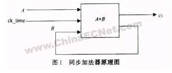 (1)加法器 加法器位数(二进制)决定了校正的精度,位数越高,精度越高。加法器原理图如图1所示,图中cy是加法器的进位输出端,ck_time为实际时钟或待校时钟。